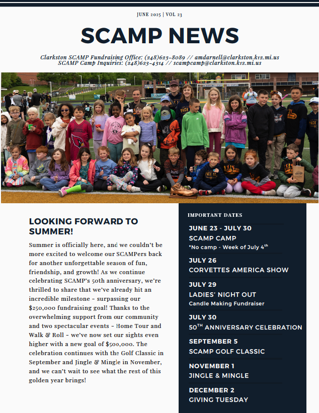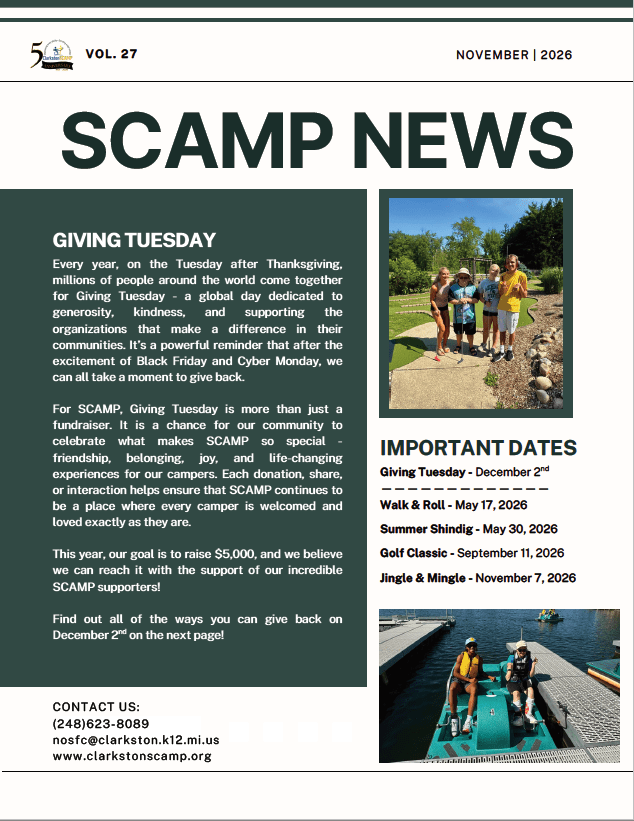 Tee up for a great cause at the 38th Annual SCAMP Golf Classic! Join us for a day of fun, friendly competition, and community spirit—all in support of Clarkston SCAMP, a summer camp for children and adults with disabilities.